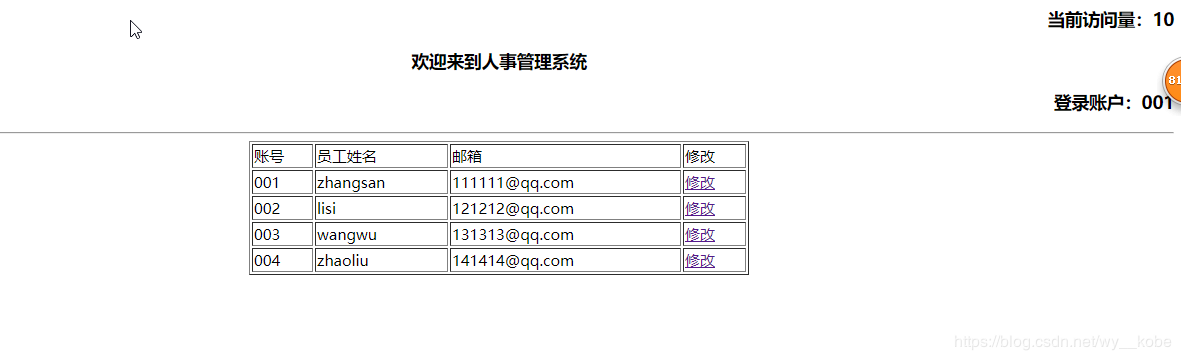 登錄成功后進入員工信息顯示頁面