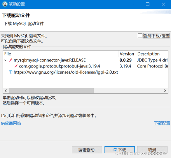 3、如果首次連接mysql數(shù)據(jù)庫會提示下載對應(yīng)的jdbc驅(qū)動,如下圖點擊下載即可。