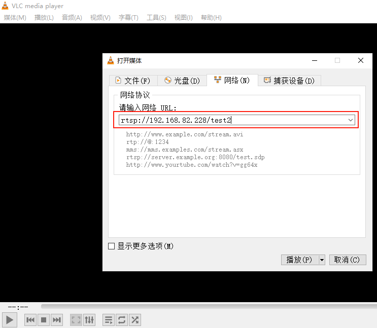 本次實驗中,使用ffmpeg將視頻推流到流媒體服務器EasyDarwin中 (3)VLC media player