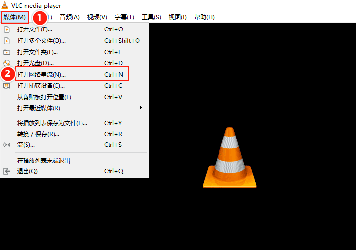 (2)點擊【媒體】——>【打開網(wǎng)絡串流】.