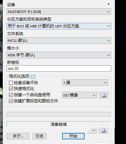 3、插上U盤,點擊打開Rufus軟件界面。在創建一個啟動盤的后面選擇ISO鏡像,點擊其右側的光盤圖標選擇加載路徑。然后點擊【開始】進行系統盤制作。