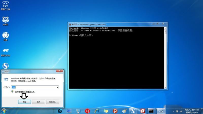 開(kāi)始→運(yùn)行→輸入:CMD 點(diǎn)擊確定(或按回車鍵),打開(kāi)命令提示符窗口。