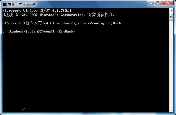 2、輸入(按回車鍵執(zhí)行命令)進(jìn)入系統(tǒng)默認(rèn)備份注冊(cè)表的文件夾(CD命令為進(jìn)入):