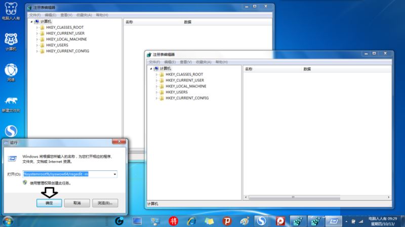 9、64位的操作系統(tǒng)中不僅有64位的注冊(cè)表regedit.exe程序,還會(huì)有專供32位程序使用的regedit.exe程序(路徑是:%systemroot%/Syswow64),默認(rèn)兩者不能同時(shí)打開(kāi),但可以使用參數(shù)(-m)同時(shí)打開(kāi),對(duì)比之。